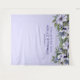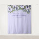 Fleurs aquarelles bleu pervenche tendance avec des éléments botaniques verts pour plus de volume, fond pastel violet clair et calligraphie en écriture cursive violette foncée et typographie serif.