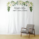 Un fond amusant pour que vos invités de la fête de douche prennent des photos devant lors de la douche de mariée. Avec des fleurs blanches et de la verdure. Personnalisez avec votre texte.