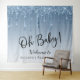 Un tapisserie élégante et luxueuse de fond de photo de bienvenue pour votre shower de bébé garçon qui présente de faux paillettes bleus qui coulent du haut et "Oh Bébé !" dans un script élégant sur un fond bleu ombré. Personnalisez facilement le nom de la future maman.