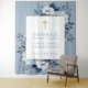 Ce fond de photo de première communion fleuri bleu élégant peut être personnalisé avec vos informations en typographie bleu poussiéreux moderne. Conçu par Thisisnotme©