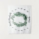 Entourez votre doux bébé d'une couronne de feuillage et de feuilles vertes de forêt aquarelle avec ce joli fond de photo présentant le nom du bébé en écriture calligraphiée à la main, et les mois 1 à 12 autour du périmètre de fleurs.