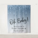 Un élégant fond de photo pour votre shower de bébé garçon avec des gouttes de paillettes bleues qui tombent du haut et "Oh Bébé !" dans un script stylisé sur un fond bleu ombré. Vous pouvez facilement personnaliser le nom de la future maman et la date du shower.