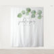 Fond de photo pour fête de remise de diplôme avec nom et eucalyptus. Idéal pour prendre des photos lors de votre remise de diplôme avec le nom et l'année du diplômé en haut et feuillage aquarelle. Il y a un script élégant et informel pour la fête de remise de diplôme et personnalisez facilement le reste du texte.