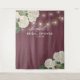 Modèles de toile de fond pour photobooth de mariage / célébration de mariage - Élégant fond rouge burgundy avec des fleurs d'hortensia aquarelles blanches et des guirlandes lumineuses.