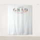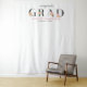 Un élégant fond de photographie pour une fête de fin d'études avec "félicitations au diplômé" en élégante police noire décorée de roses aquarelles en rose et orange. Personnalisez avec vos détails.