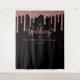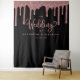 Tapisserie de fond de bienvenue de mariage à paillettes or rose noir avec des gouttes de paillettes rose/or rose faux chic sur un fond noir chic avec votre nom et "l'amour ne manque jamais" en typographie de script moderne. Parfait pour votre esthétique de luxe ou votre fête ! Vous êtes inondé de luxe - montrez-le ! Veuillez nous contacter à cedarandstring@gmail.com si vous avez besoin d'aide pour la conception ou les produits correspondants.
