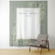 Avec des feuilles de verdure délicates peintes à l'aquarelle sur un fond vert sauge, ce fond de photomaton de mariage chic peut être personnalisé avec le nom de la mariée et la date spéciale. Conçu par Thisisnotme©