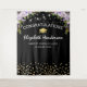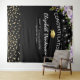 Élégant fond de photomaton de remise de diplômes avec un fond noir tendance, des fleurs aquarelles violettes, une casquette de diplômé, des paillettes dorées et un modèle de félicitations facile à personnaliser.