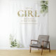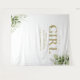 Fond pour Photobooth de Baby Shower 'C'est une fille' avec une typographie dorée élégante et un beau feuillage botanique. Conçu par Thisisnotme©