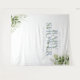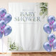 Un élégant fond de photobooth pour baby shower avec une typographie dusty blue et un beau feuillage botanique vert. Conçu par Thisisnotme©