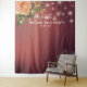 Modèles de Toile de Fond pour Photobooth de Mariage / Enterrement de Vie de Jeune Fille - Écriture Élégante, Fleurs Aquarelles Roses Blanches et Guirlandes Lumineuses sur Fond Damassé Rouge Bourgogne.