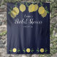 Avec des citrons et de la verdure sur fond bleu marine, ce décor de fond botanique élégant pour une fête prénuptiale peut être personnalisé avec les informations de votre événement spécial. Conçu par Thisisnotme©