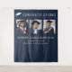 Fond de photomaton élégant et bleu foncé pour la fête de fin d'études pour célébrer le diplômé avec "Félicitations" en grande typographie blanche, une illustration d'une casquette de diplômé, un collage de trois photos et son nom, année de promotion et nom de l'école en typographie blanche moderne. Les couleurs du fond et du texte peuvent être modifiées pour correspondre aux couleurs de votre école en sélectionnant "personnaliser davantage".