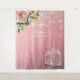 Modèles de fond de photomaton de mariage - Écriture élégante, pot Mason, roses roses aquarelles florales et guirlandes lumineuses sur fond de fleurs roses. Un design parfait pour votre grand jour ! Tous les styles de texte, couleurs et tailles peuvent être modifiés pour répondre à vos besoins.