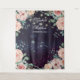 Modèles de fond de photomaton de mariage - Élégantes fleurs de rose aquarelles roses pêche blanc et guirlandes lumineuses sur fond de lumières bokeh violettes scintillantes.
