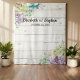 Modèles de fond de photomaton de mariage - Élégantes plantes succulentes à l'aquarelle sur fond de bois rustique blanc.