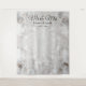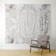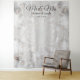 Fond de photomaton suspendu argent gris blanc or pour réception de mariage. Design simple élégant. Texte personnalisable. Image copyright Marg Seregelyi Photography.