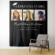 Tapisserie moderne de fond de photomaton pour fête de fin d'études noirs avec "Félicitations" en typographie blanche et une illustration d'une casquette de fin d'études sur le dessus, un collage de trois photos, son nom dans un script blanc élégant, et son année de classe et le nom de l'école en typographie blanche simple. Les couleurs du fond et de la typographie peuvent être modifiées selon les couleurs de votre école en sélectionnant "éditer dans l'outil de conception".