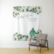 Tapisserie Quinceanera à utiliser comme fond pour photos lors de votre célébration de 15 ans. Le design présente une robe de princesse verte émeraude et or avec feuillage aquarelle et fleurs de rose péonie blanche. Mis Quince est écrit en calligraphie élégante et tourbillonnante et vous pouvez personnaliser avec les détails de votre événement. Veuillez consulter ma collection Emerald Greenery & White Peony pour les articles assortis ou me contacter pour créer les modèles dont vous avez besoin.
