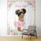 Fond de salle pour baby shower de princesse avec une adorable petite fille afro-américaine, princesse ethnique avec une coiffure afro mignonne, couronne dorée et joli tutu rose et perles sur un élégant fond floral rose et or. Ce fond de salle pour baby shower de princesse est facilement personnalisable avec le texte de votre choix. Vous pouvez également changer la couleur de fond de cette bannière de baby shower de princesse afro-américaine.