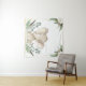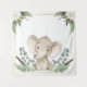 Fond de scène de Baby Shower éléphant doré avec des accents de style boho avec des plumes et des magnolias et un adorable éléphant bébé aquarelle. L'ajout idéal à votre décoration de baby shower neutre en matière de genre.
