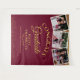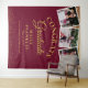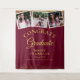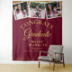Un élégant fond de scène pour photobooth de remise de diplômes présentant les 3 photos spéciales de votre diplômé, son nom et les détails de la remise de diplôme dans une typographie chic sur un fond pailleté or et bourgogne. Conçu par Thisisnotme©