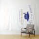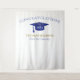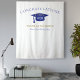Fond de scène pour célébration de remise de diplômes moderne pour occasions photo ! Paillettes en haut et en bas, chapeau de diplômé et lettrage en bleu, modèle de nom en or. 'Promotion de' en lettrage cursif pailleté or avec modèle d'année en blanc. Ajoutez l'année, le nom et l'école.
