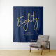 Cette tapisserie moderne est parfaite pour une fête d'anniversaire chic bleu marine et or pour les 80 ans. Vos invités adoreront prendre une photo avec ce fond de scène de fête sophistiqué et se souviendront de votre jour spécial. Le design présente un "Quatre-vingts" écriture pinceau dorée avec texte personnalisé. Vous pouvez personnaliser le nom, l'événement et la date en bas de la tapisserie. Merci !