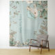 Ce design a un charme vintage avec un ours mignon dans un bonnet qui regarde derrière une bordure feuillue et fleurie dans des tons de vert et de crème. Pratique comme arrière-plan pour les photos ou le photomaton, ou pour un fond virtuel. L'œuvre d'art fonctionnera sur n'importe laquelle des options de taille rectangulaire (mais pas sur le carré 57 x 57 pouces). Vous pouvez facilement personnaliser le texte avec vos propres détails ou supprimer le texte si vous le préférez.