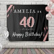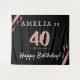 Fond de fête d'anniversaire des 40 ans élégant rose et noir. Le design est dans les tons rose, blanc et noir avec des bandes aquarelles roses. Utilisez les tapisseries comme toile de fond pour la fête des 40 ans d'une femme. Personnalisez-le avec votre nom, date et âge.