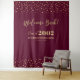 Cette tapisserie moderne est parfaite pour une fête de retrouvailles de classe au thème de couleurs rouge bordeaux et or chic. Un fond de scène photo personnalisé pour se souvenir de votre journée spéciale. Le design présente une typographie dorée "Bienvenue !" avec un fond de confettis. Vous pouvez personnaliser l'année de promotion, le nom de l'école et la date de l'événement.