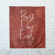 Bannière de fond de mariage Boho meilleur jour avec un nom et une date. Panneau de bienvenue dans des tons terre. Pour un mur, une arche ou un support de photographie.