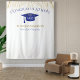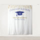 Fond pour les opportunités photo de célébration de la remise des diplômes moderne ! Paillettes en haut et en bas, streamers dorés du bord supérieur, chapeau de remise des diplômes et lettrage en bleu, modèle de nom en or. Promotion en lettrage script pailleté or avec modèle d'année en blanc. Ajoutez l'année, le nom et le nom de l'école.