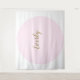 Avec les décors tendance et stylés que j'ai vus, avoir le nom du célébrant comme centre autour duquel vous pouvez décorer crée une fête personnalisée. J'ai conçu cette tapisserie pour inclure un cercle que votre décorateur peut mettre en valeur avec des guirlandes de ballons, des lumières et d'autres idées amusantes. Les clients veulent parfois seulement un nom dans un script élégant pour leurs tables de gâteaux, j'espère que cela résout le problème de fond. Les couleurs sont personnalisables. Utilisez ceci pour les baby showers, les mariages, les anniversaires, les quinceanera, les débuts, les sweet sixteen, les bat mitzvah, ou toute autre célébration importante. Rose avec une teinte or jaune imprimée pour le nom.