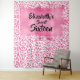 Tapisserie élégante de fond de photomaton à motif léopard rose et blanc surimprimé de faux foil rose et les détails de votre fête d'anniversaire sweet sixteen en lettrage chic. Cartes d'invitation COORDONNÉES et plus disponibles dans notre magasin.