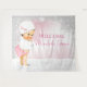 Bannière de toile de fond pour Baby Shower Fille Hiver Merveilleux avec une adorable petite fille brune portant une tenue de neige rose mignonne sur un fond de neige hivernal merveilleux. Cette belle bannière de toile de fond pour Baby Shower Hiver Merveilleux est facilement personnalisable avec le texte de votre choix.