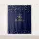 Cette tapisserie moderne est parfaite pour une fête d'anniversaire chic bleu marine et or. Vos invités apprécieront prendre une photo avec ce fond de fête sophistiqué et se souviendront de votre jour spécial. Le design présente une typographie dorée " Anniversaire 90 ans " et un fond de confettis en hexagone. Vous pouvez personnaliser le nom et la date de l'événement. Des invitations et des fournitures de fête assorties sont disponibles dans ma boutique BaraBomDesign. Merci !