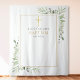 Avec des feuilles délicates aquarelles, vous pouvez personnaliser le nom, l'événement et la date sur ce chic fond de toile de fond botanique pour baptême ou christening. Conçu par Thisisnotme©