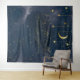 Fond de toile de fond sur le thème de la lune avec un ciel bleu marine avec lune et étoiles dorés.