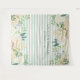 Ce superbe fond de photomaton de mariage présente des fleurs tendance à l'aquarelle dans des nuances d'ivoire, de blanc, de pêche et d'or, avec des feuilles vertes, sur un fond rayé vert sauge et blanc.
