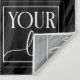 Fond noir et blanc pour votre entreprise avec votre logo dans un cadre autour de votre texte personnalisé. Ajoutez votre identifiant de réseau social sous les icônes blanches de réseaux sociaux.