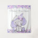 Fond de baby shower éléphant rose fille avec un adorable éléphant bébé fille avec un serre-tête mignon sur un beau fond floral aquarelle rose et violet. Vous pouvez ajouter le texte de votre choix, et vous pouvez changer la couleur de fond sur ce fond de baby shower éléphant violet mignon.