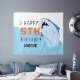Fond d'anniversaire requin pour enfants. Panneau d'anniversaire 5 ans en bleu et orange pour la décoration d'anniversaire 5 ans d'un garçon ou d'une fille.