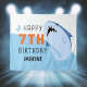 Fond de fête d'anniversaire requin pour enfants. Panneau d'anniversaire 7 ans en bleu et orange pour la décoration d'anniversaire d'un garçon ou d'une fille.