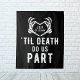 Bannière de mariage ou de réception avec la citation "Jusqu'à ce que la mort nous sépare" avec des mains de squelette formant un cœur. Fond noir avec une date modifiable et les initiales des mariés. N'oubliez pas de visiter notre collection pour voir plus d'articles coordonnés qui correspondent à ce design pour votre événement spécial.