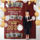 Croquis doré sur fond rouge bordeaux/marron/carmin Typographie grasse, Félicitations à la promotion 2024, Bonnet de diplômé doré, Toile de fond pour photomaton de fête de fin d'études en collage photo multi 9 photos.