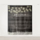 Fonds de mariage de grange de bois de lumières de chaîne de fleurs blanches de souffle de bébé rustique.