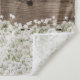 Fonds de mariage en bois de grange à fleurs blanches de bébé's breath et lanterne ancienne & lumières de chaîne.
