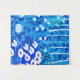 Tapisserie dans une illustration semi-abstraite d'une forêt d'imaginaires avec fleurs, feuillage, arbres et oiseaux, dans les tons bleu cobalt et blanc
