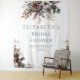 Cette aquarelle de forêt rustique moderne et élégante pinecone floral de la douche arrière-plan photo de la nuptiale peut être personnalisée avec vos informations dans la typographie bleue stylisée. Conçu par Thisisnotme©